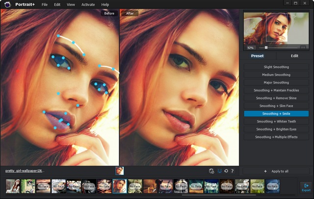 - After retouching them in portrait+ you can use Photo+ to compare and select your favorites